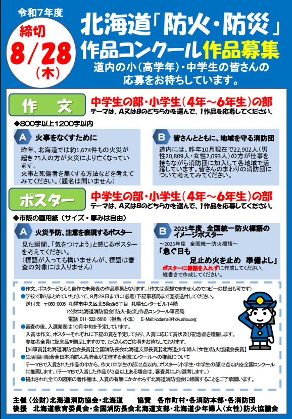 令和7年度「防火・防災」作品コンクールの応募を開始しました! 小中学生の皆さまの作品のご応募をお待ちしております!