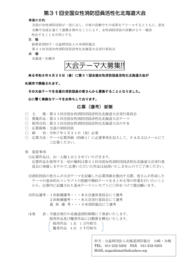 第31回全国女性消防団員活性化北海道大会 大会テーマ募集!!